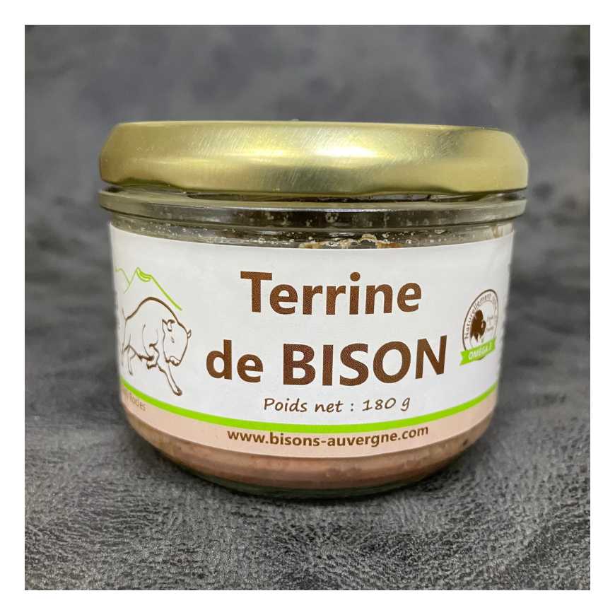 Viande de Bison (80%), maigre et gras de porc, un oeuf de cocotte, vin blanc, whisky (juste une larme), sucre, persil, ail, une pincée de sel et une autre d'épices. Présence de sulfites. Sans conservateurs, ni colorants.