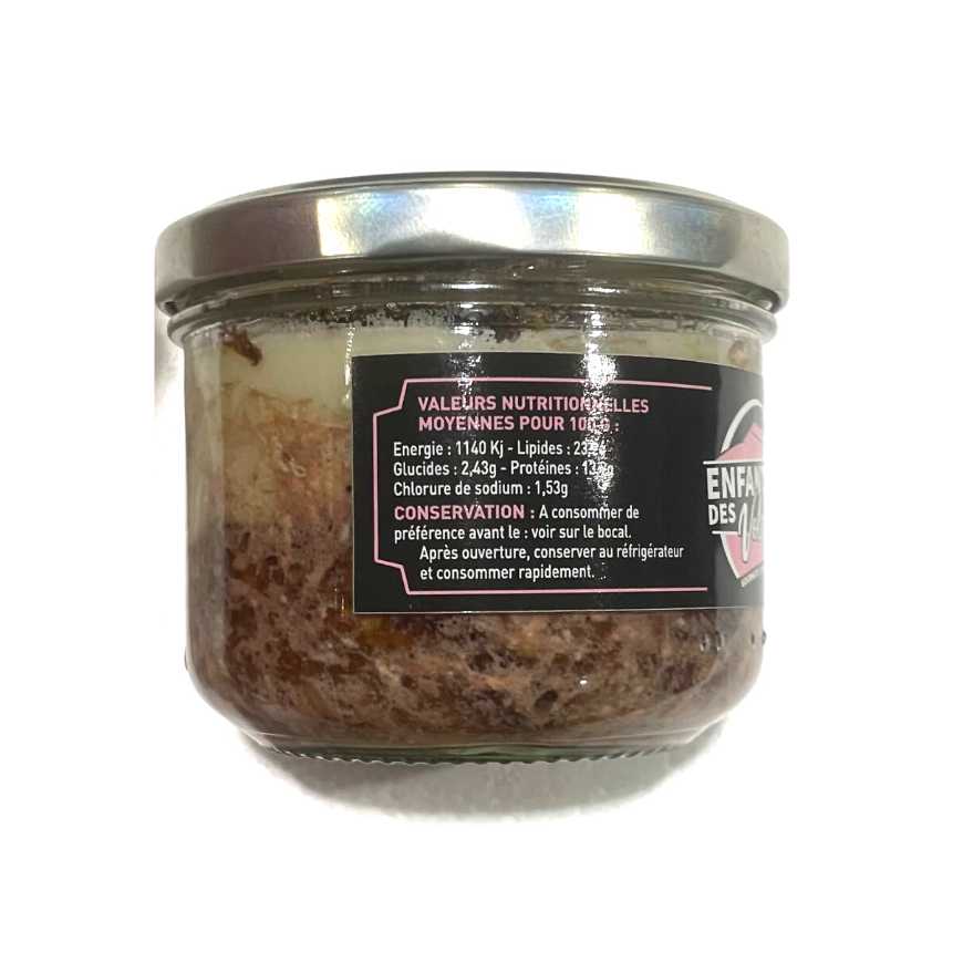 INGRÉDIENTS : Gras et maigres de porc, foie, sanglier, oignons, myrtilles, sel, persil, poivres, épices.