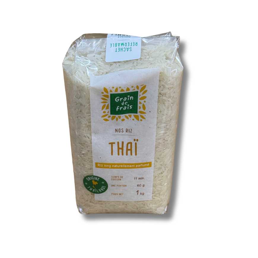 Ingrédient : riz long. Traces possibles d'arachides, de fruits à coque et de gluten. Origine : Thailande conditionné en France. A conserver à l'abri de la chaleur, de la lumière et de l'humidité. Après ouverture, bien refermer le paquet.