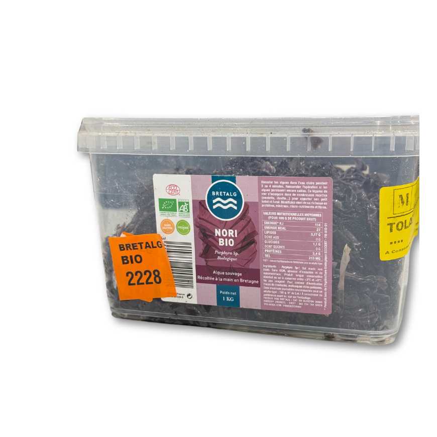 Ingrédients : Porphyra Sp.* Sel marin non traité. Sans OGM, absence d'ionisation et de nanomatériaux. Produit longue conservation stabilisé au sel à conserver entre +3°C et +8°C. Ne pas congeler. Peut contenir d'éventuelles traces de crustacés, mollusques et/ou polssons.