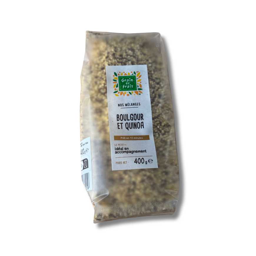 Ingrédients : boulgour (BLE) 80%, quinoa rouge 20%. Traces possibles de soja, de sésame et de moutarde.