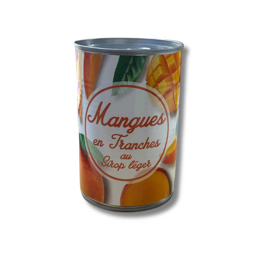 FR - Mangues préservées, en tranches Ingrédients : mangues, eau, sucre, antioxydant: acide citrique, correcteur d'acidité : acide ascorbique. À consommer de préférence avant le / numéro de lot : voir sur le fond de la boîte. À conserver à l'abri de la chaleur, de la lumière et de l'humidité. Après ouverture, à conserver au réfrigérateur, dans un contenant alimentaire hermétique et dans le sirop 2 jours maximum.