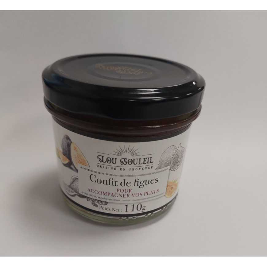 confits de figues Lou Souleil Cuisiné en Provence-110 g A déguster sur des toasts pour l'apéritif ou en entrée froide pour accompagner du foie gras, des terrines de volaille, du gibier, des viandes froides ou chaudes, ou des fromages.