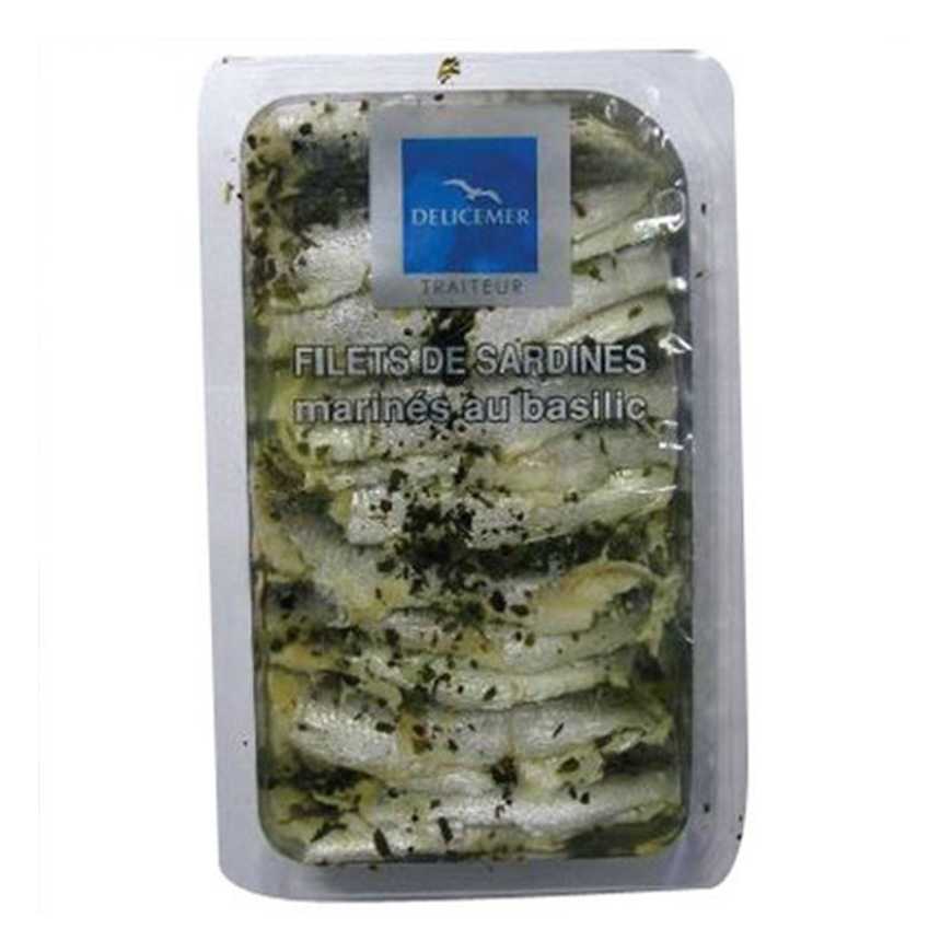 Filets de Sardines Marinés(sardina pilchardus pêché en mer noire,vinaigre,sel, acidifiant:acide citrique) 70% ,huile de tournesol 29.8%,basilic 0.2%.