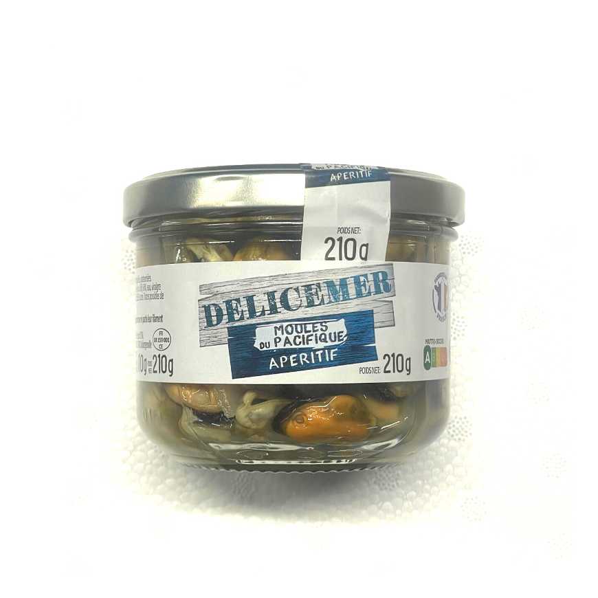 Moules du pacifique 54%, eau, vinaigre d'alcool, oignons, jus de citron concentrÈ, sel, acidifiant : E330, sucre