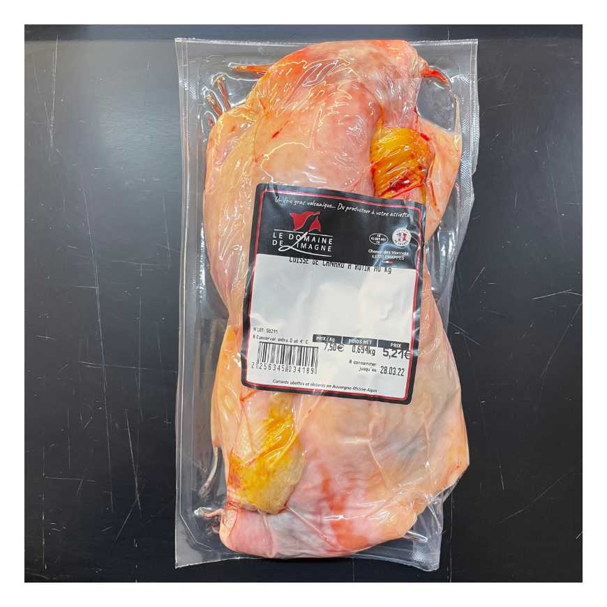 2 pièces environ 600 g cuisse dégraissée DLC 14 jours à partir du jour de l'abattage conservation au frigo