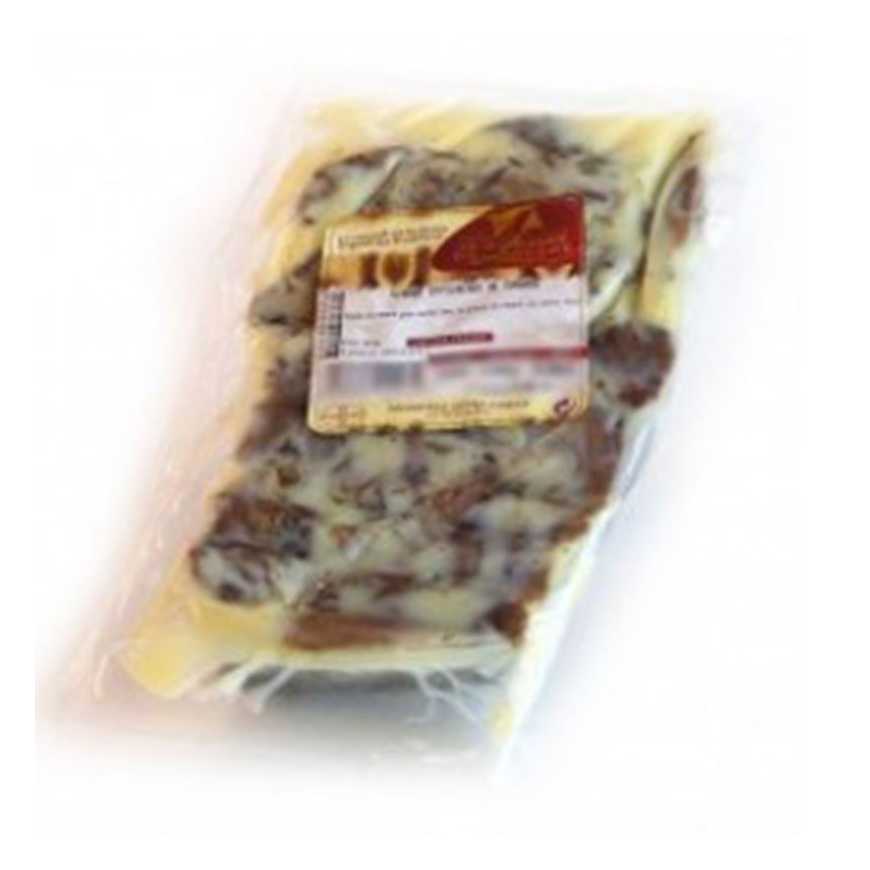 cette viande effilochée est idéal pour faire vos hachis parmentier de canard avec par exemple au fond de votre cassolette un blanc de poireaux Au Four : Réchauffée avec votre purée de pomme de terre dur le dessus Dans une casserole : au bain marie Au micro onde : N'oubliez pas de perçer la poche portion pour une personne 125 g en moyenne .sel,poivre,thym